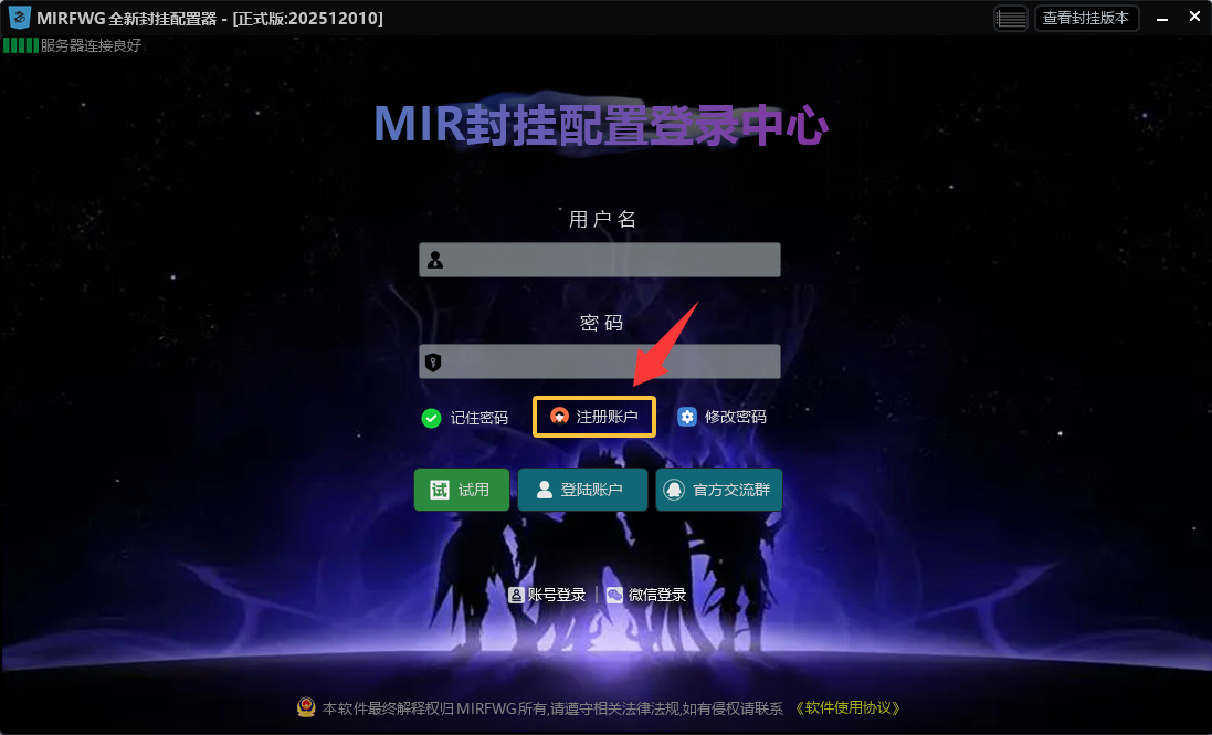 【第一步】官方www.mirfwg.com网站主页下载(新MIRFWG封挂配置器)-下载后解压并运行